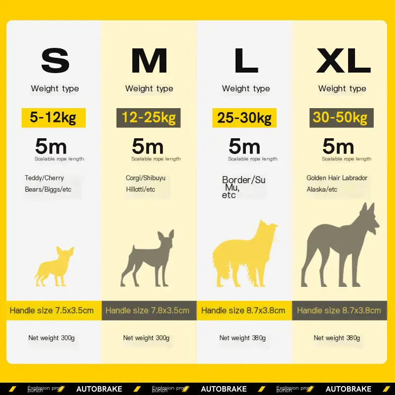 Crafted with explosion-proof punching technology, this leash offers durability and strength for dogs weighing between 12 kg to 50 kg. With three size variations¡ªM, L, and XL¡ªeach leash extends up to 5 meters, giving your dog the freedom to explore while keeping you in control.